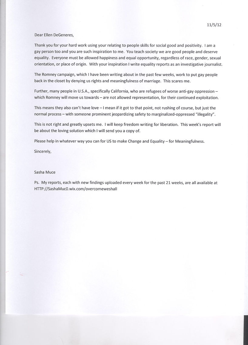 Public Letters to President Obama, Secretary of State Clinton, President Clinton, and Ellen DeGeneres