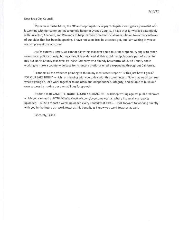 Unification Letters to Our Alliance Of North Orange County (OANOC) City Councils